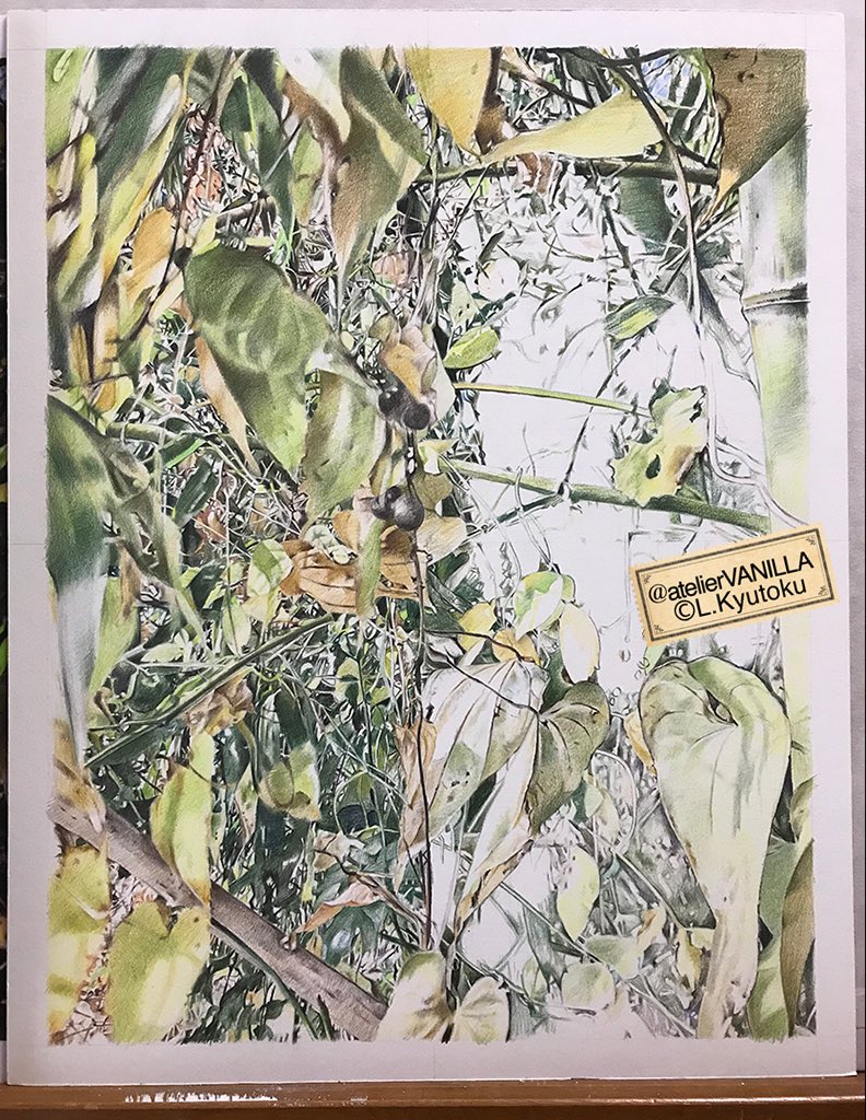 illustrated by L.Kyutoku 制作中のイラストの全体図🎨 やっと全体の下描き完了です。 あとは、ひたすら描き込み作業✍🏻 #色鉛筆画 #イラストレーション #ColorPencilArt