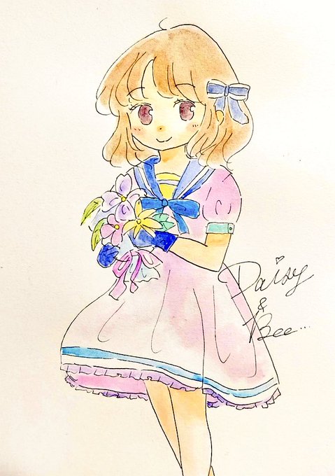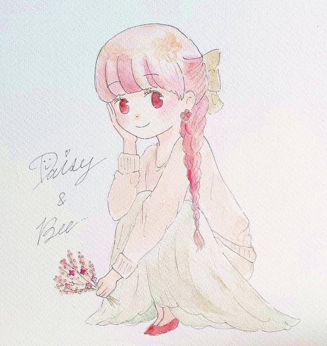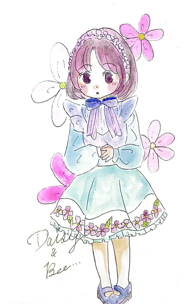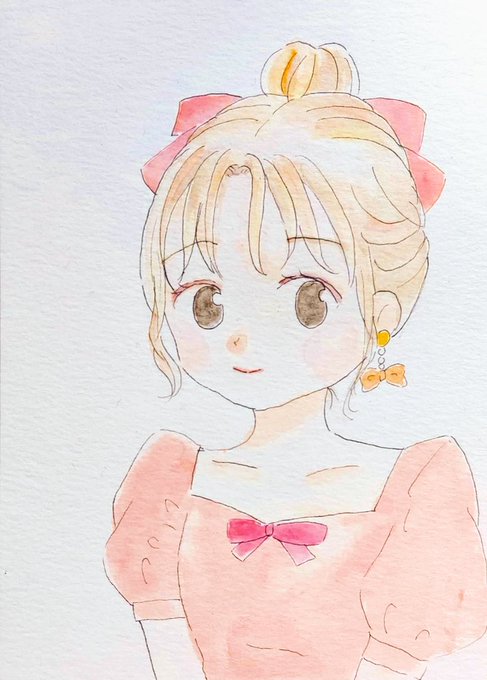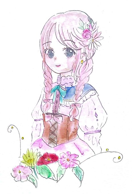 今日は何かとバタバタして忙しかったけど、なんとか1枚描けました‼️個人的に可愛いく出来ました😁💕最近のお気に入りかも✨ #イラスト #絵描きさんと繋がりたい #アナログイラスト #女の子のイラスト #水彩イラスト #水彩 #癒し #イラスト好きさんと繋がりたい