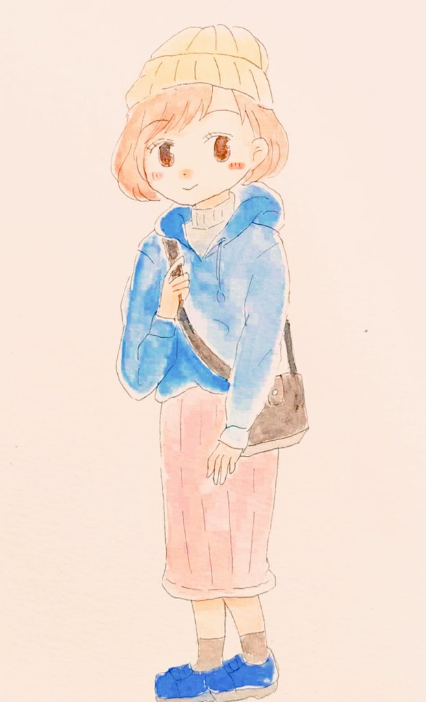 今日はカジュアルな感じで描きました❗️シンプルな女の子もたまに描くと楽しいですね😁🎶 #イラスト好きな人と繋がりたい #イラスト #絵描きさんと繋がりたい #癒し #水彩イラスト #アナログ絵 #女の子イラスト #韓国風