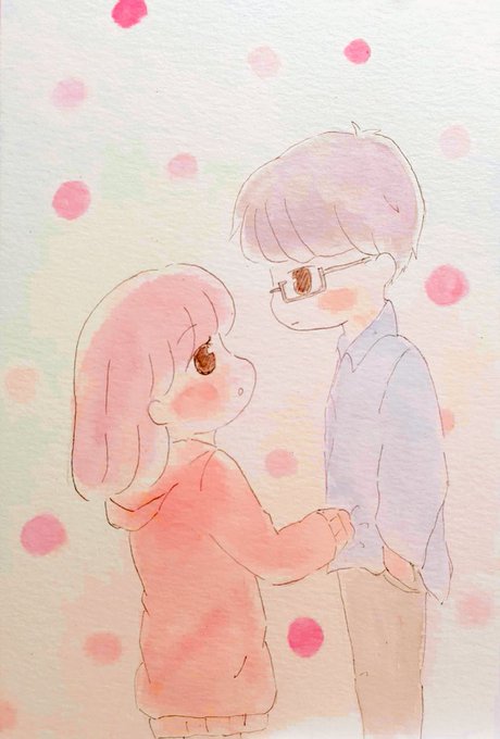 ハクナ配信で仲良しのチビちゃんにカップルの絵とか描いてみたら?の一言にものすごく久しぶりにカップルイラスト描きたくなり、描いてみました‼️うまく描けたかな?w #イラスト #イラスト好きさんと繋がりたい #絵描きさんとつながりたい #カップルイラスト #水彩 #オリジナルイラスト