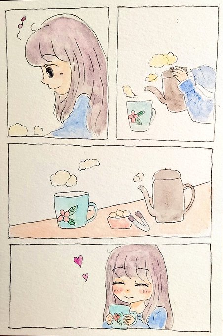 今日もオリジナルでショートマンガ描きました🍀 『お気に入りのマグカップ』です(*^^*) #イラスト好きさんと繋がりたい #漫画 #イラスト #絵描きさんと繋がりたい #アナログイラスト #水彩 #癒し #オリジナル漫画