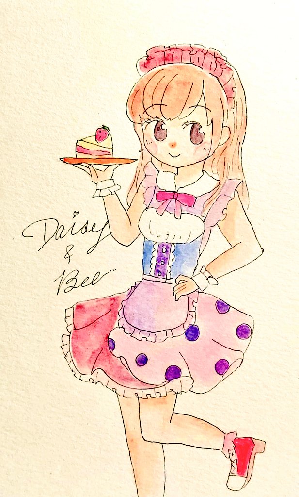 今日は可愛いらしいウェイトレスさんを描きました💕 今日も誰かを癒せますように🍀😌 #イラスト #イラスト好きな人と繋がりたい #絵描きさんと繋がりたい #アナログイラスト #女の子イラスト #水彩 #癒し
