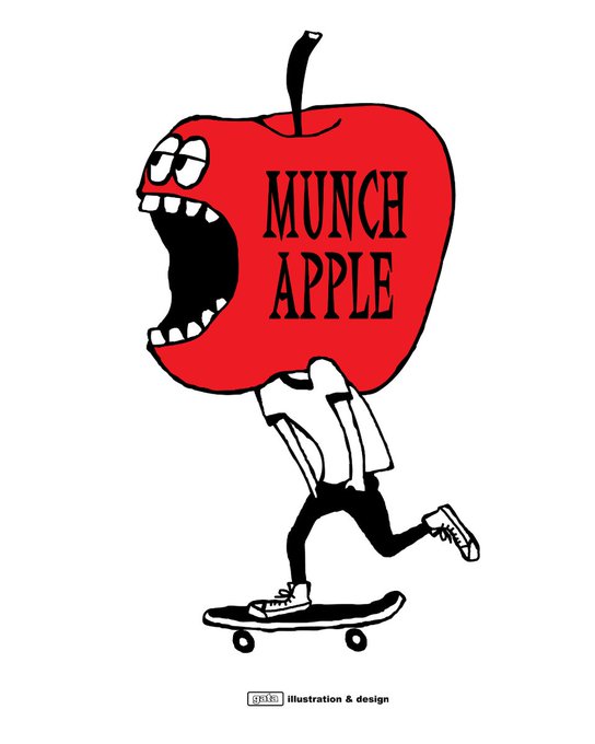 6~7年前にアパレルブランドが開催したコンペで賞を頂き商品化された作品です。 コンテストテーマはフルーツモンスター。 作品タイトル「MUNCH APPLE」 #過去絵 #Tシャツデザイン #キャラクターデザイン #ファッションイラスト #art #アート