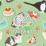 〈カフェネコ~昭和レトロなにゃんこパーラー(グリーン)〉 ハチワレ・三毛猫・サバトラちゃん😺和っぽいにゃんこ達と昭和風メニューのコラボレーション🍝💕🎵 realfabric.jp/view.php?num=3… #リアルファブリック #布 #生地 #ファブリック #可愛い布 #猫イラスト #猫 #猫柄 #猫好きさんと繋がりたい