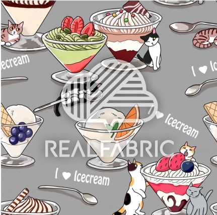 アイスクリームの森の中で戯れるにゃんこ達の生地です😺🍨💕 〈I ♡ IceCream アイスと猫の森 グレー〉 realfabric.jp/view.php?num=3… #リアルファブリック #布 #生地 #ファブリック #可愛い布 #猫イラスト #猫 #猫柄 #猫好きさんと繋がりたい