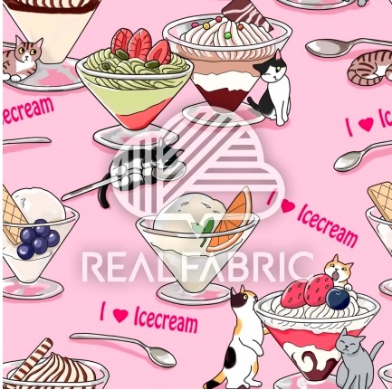 ひんやりアイスとちっちゃなにゃんこ達の可愛く楽しいデザインです😺💗🎵 〈I ♡ IceCream アイスと猫の森 ピンク〉 realfabric.jp/view.php?num=3… #リアルファブリック #布 #生地 #ファブリック #可愛い布 #猫イラスト #猫 #猫柄 #猫好きさんと繋がりたい
