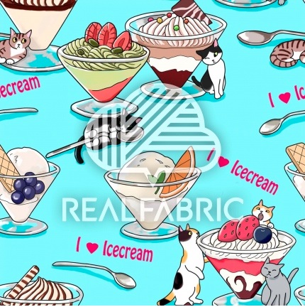 ひんやりアイスと戯れるちびにゃんこ達の可愛くさわやかな生地です😺💕🍨 〈I ♡ IceCream アイスと猫の森 ブルー〉realfabric.jp/view.php?num=3… #リアルファブリック #布 #生地 #ファブリック #可愛い布 #猫イラスト #猫 #猫柄 #猫好きさんと繋がりたい