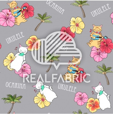 💗😺猫生地のご紹介😺💗 〈にゃんこの音楽隊♬ ウクレレ・オカリナ グレー〉 ウクレレとオカリナを奏でるにゃんこと、ハイビスカスとヤシを並べました🥰 realfabric.jp/view.php?num=3… #リアルファブリック #布 #生地 #ファブリック #可愛い布 #猫イラスト #猫 #猫柄 #猫好きさんと繋がりたい