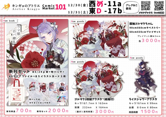 ゴルマク2枚組のアクスタ大好評で完売でした! 二日目東Ⅾ -17b「ざしきねこ」に、新刊セットと新刊(合同誌単品)を委託予定です。ライスシャワーのアクスタも残り僅か! メロンブックスとBOOTHでも予約受付中です、よろしくお願いいたします~ melonbooks.co.jp/overtraffic.ht… atelier-kingyo.booth.pm/items/4403582 #C101