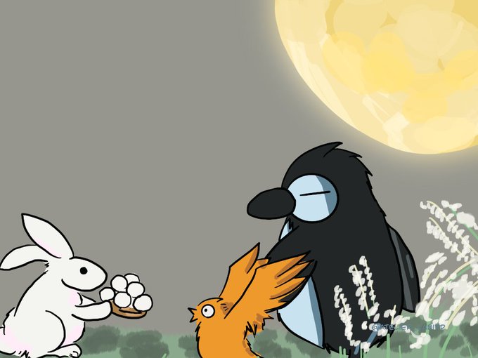 [Day680] This year's full moon is September 10. I hope there will be no clouds. 今年の十五夜は9月10日です。雲がないといいですね。 #illustration #イラスト