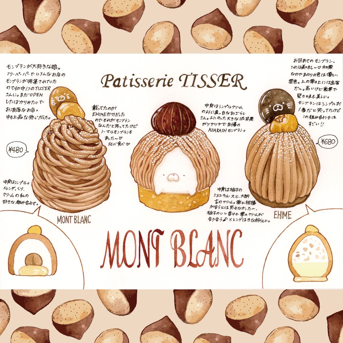 88 436 モンブランが美味しい〜🌰✨ #透明水彩 #食べ物イラスト 21/11/16 12:53