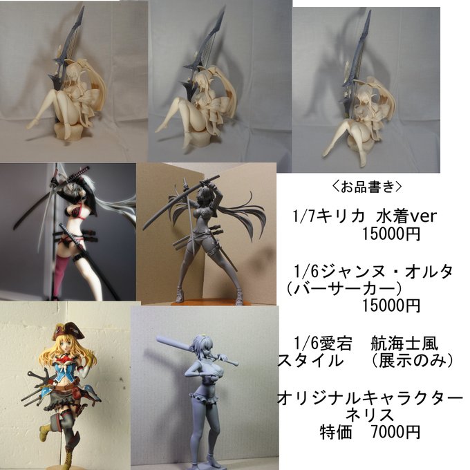 ワンフェスで作った艦これ作品から。愛宕はほぼ全てファンド、大和半身像は顔はスカルピー、体はファンド、服や髪の毛は軽量エポパテ。大和は一旦半身像で作り、レジンにして白いマジックスカルプで大幅修正して全身像に。材料色々。 #このタグを見た人はラフ造型とその完成品を見せる #艦これ