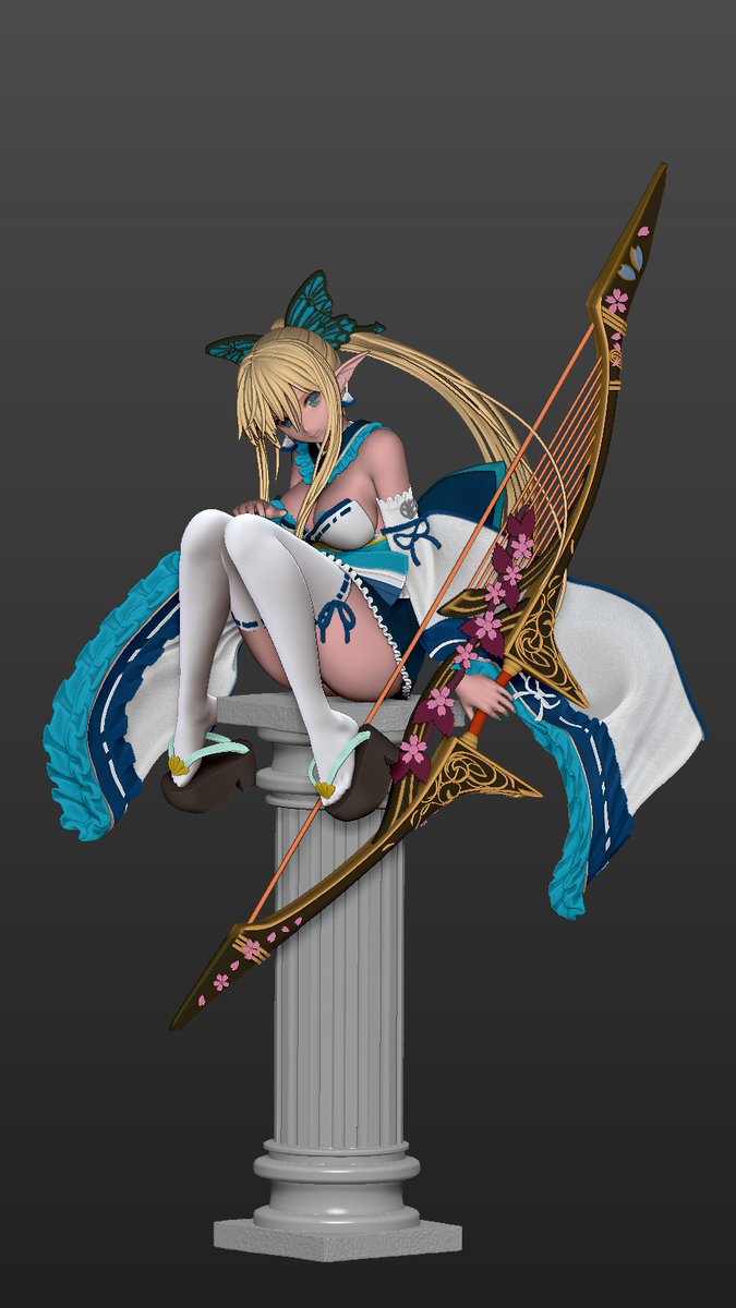 ワンフェスにシャイニング・レゾナンスのキリカをモデリングし、本申請しました。一番作りたかったTony先生の元絵を再現しつつ、弓を持たせアレンジしました。30周年もおめでとうございます。経験や頂いたアドバイスを活かしてみました。出力後は全高40㎝くらい。#シャイニング・レゾナンス #wf2022s