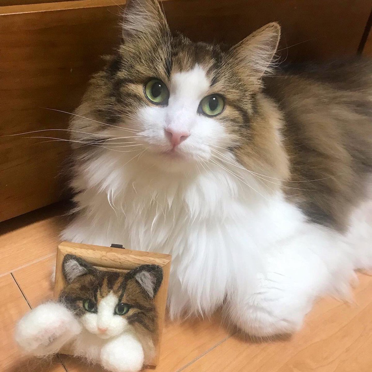 【飛びだし猫】 @myaaaa_fuuuuta 様より オーダーいただき制作致しました! トリちゃんです🐈 #羊毛フェルト #needlefelt lit.link/atelieryuuki