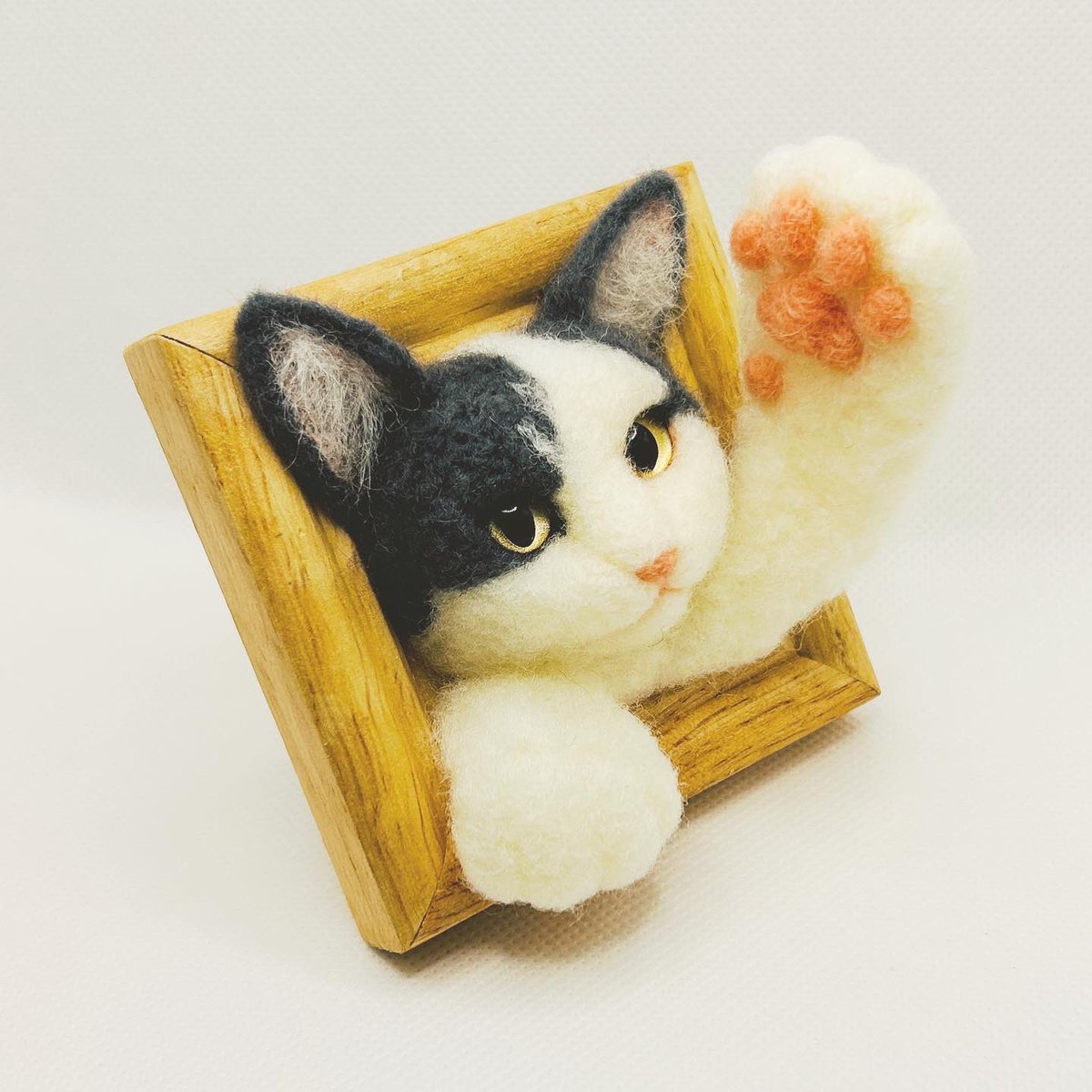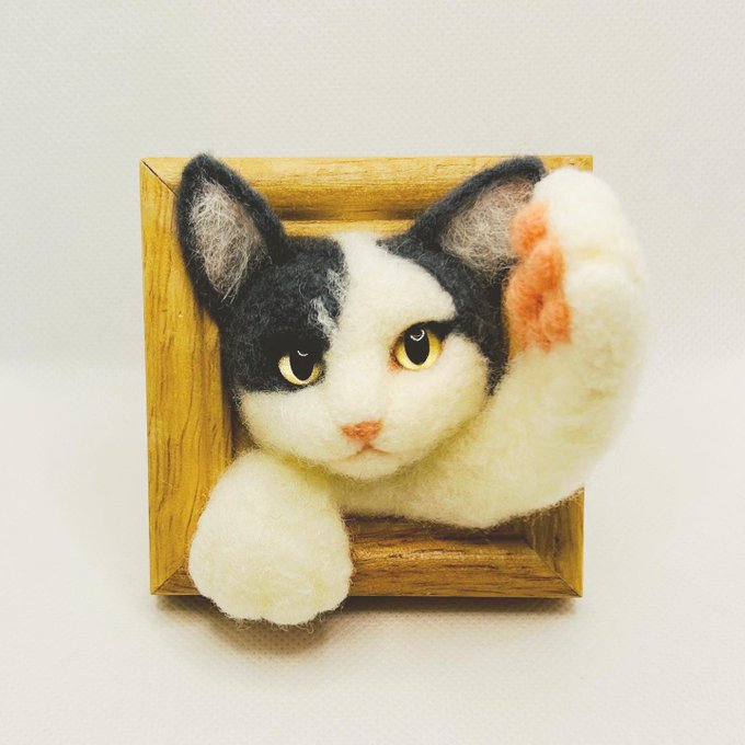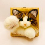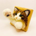 【飛びだし猫】 こげ太くんに引き続き、 @FUqb35bw78N1At9 様より オーダーいただき制作致しました! らい太くんです🐈 #羊毛フェルト #needlefelt lit.link/atelieryuuki
