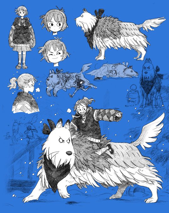 A girl and her dog. Seems post apocalyptic kinda. Like they found each other wandering around after some kind of cataclysm. #characterdesign #conceptart