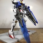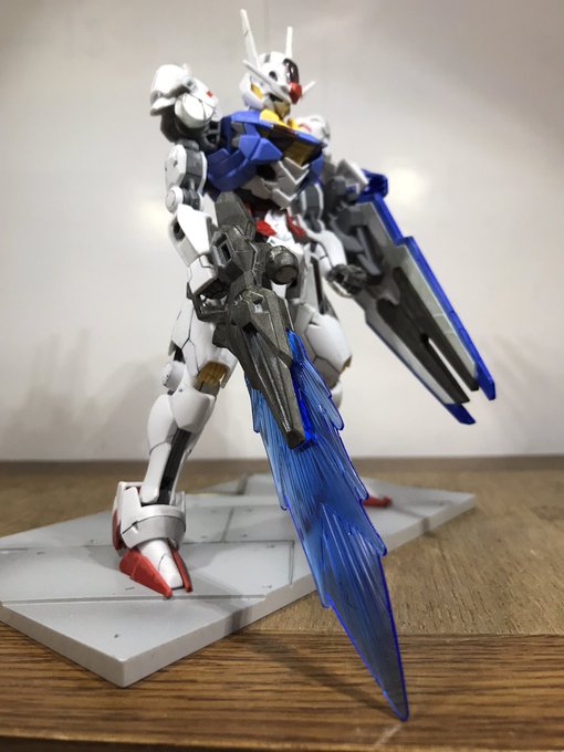 昨晩から製作を開始した1/144HGガンダムエアリアル😓 成形色&付属シール⏩艶消しクリアを吹付⏩その後小手先技術を総動員😅 漸く観れる形と成りました😅 #機動戦士ガンダム水星の魔女 #HGガンダムエアリアル #筆塗り #ガンダムマーカー墨入れ用とメタリック系 #コピック #web模型展示会龍田姫の集い