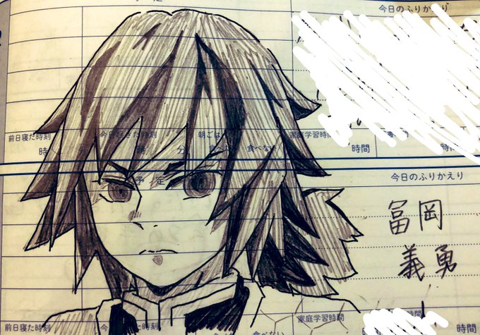 鬼滅はやってた時に中学時代のスクールライフに描いた一発描きの冨岡義勇 #鬼滅の刃 #鬼滅 #鬼滅の刃イラスト #イラスト好きな人と繋がりたい #イラスト練習中 #イラスト好きさんと繋がりたい #イラスト
