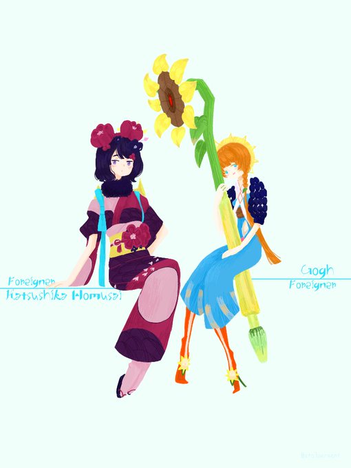 #フォロワーさんの推しが描きたい お待たせしました💦お栄ちゃんとゴッホちゃんです✨(ところどころ違うけど……許してください🙏)フォーリナーの方たちが再臨していくごとに邪悪になっていくのが大好きです💕