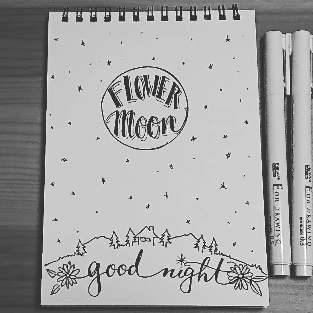 良い夢が見れそうな気がする。#フラワームーン 。#落書き #イラスト #イラスト好きな人と繋がりたい #絵描きさんと繋がりたい #flowersathome2020 #文房具 #FlowerMoon #ペン画
