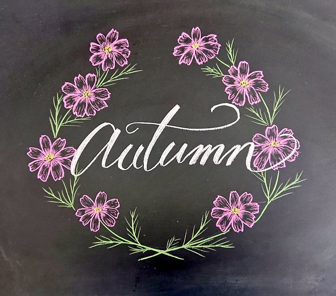 【黒板アート】チョークアートで秋のコスモス。 #イラスト #イラスト好きな人と繋がりたい #絵描きさんと繋がりたい #レタリング #イラストレーター #文房具好きと繋がりたい #TGIF メイキング動画を配信しました。