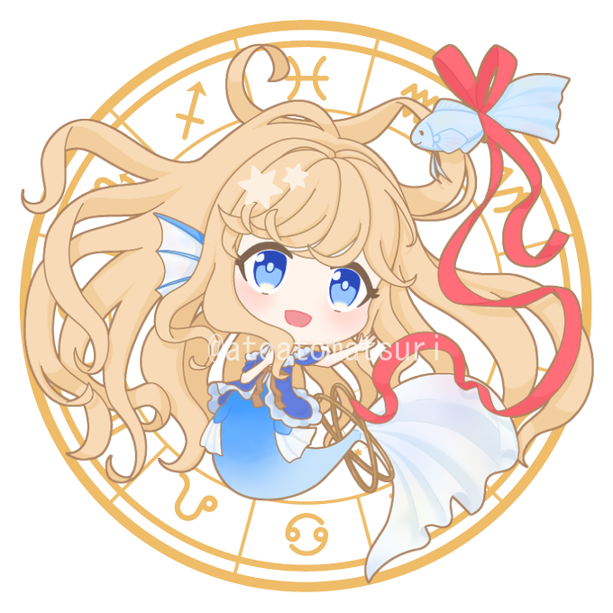ピスケスちゃんのSDイラストが完成しました~! とってもかわいく描けて大満足です。 #イラスト #ミニキャラ #SDキャラ #魚座 #人魚
