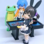 5/22 お題 「誰」 ひかる「ちょっとあれ誰!!!まさか私!?」 ゆき「猫耳メイドな先輩の人気が急上昇中ですから等身大フィギュア作ってみました。受注の数字もイイ感じです」 #夜のフィギュア撮影会 #アクアシューターズ
