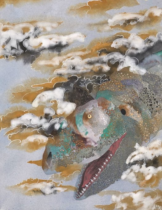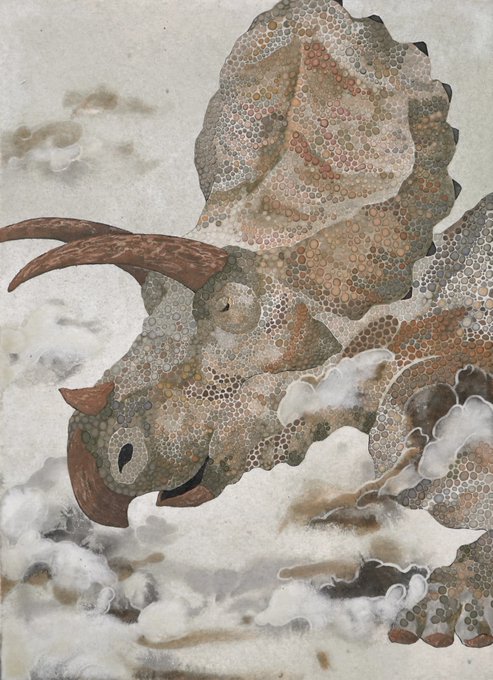 98 1355 目元のグラデが非常に綺麗。 展示は月曜日まで🦖 #日本画 #恐竜 23/05/20 16:37