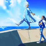 🦈アズールまたぶつかっちゃったの〜泳ぐの下手っぴすぎ〜 🐬痛いのが飛んでくおまじないしてあげましょうか? 🐙ッッぎぃぃぃぃいい!!! まだ3章途中だけどオクタヴィネル幼なじみトリオ可愛すぎた🥰 #ツイステ #ツイステファンアート