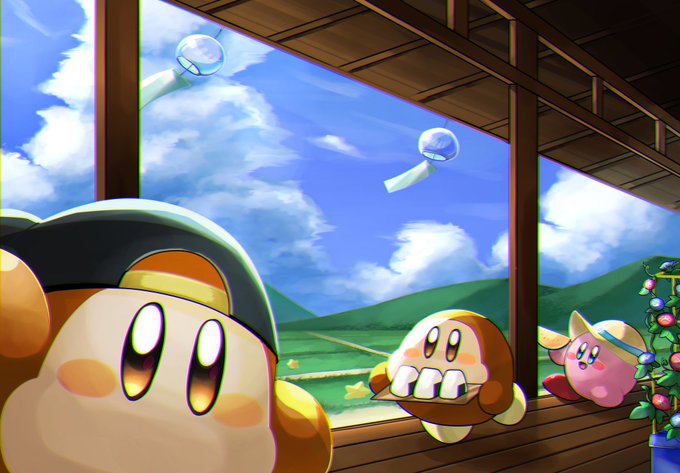 縁側とカービィ達