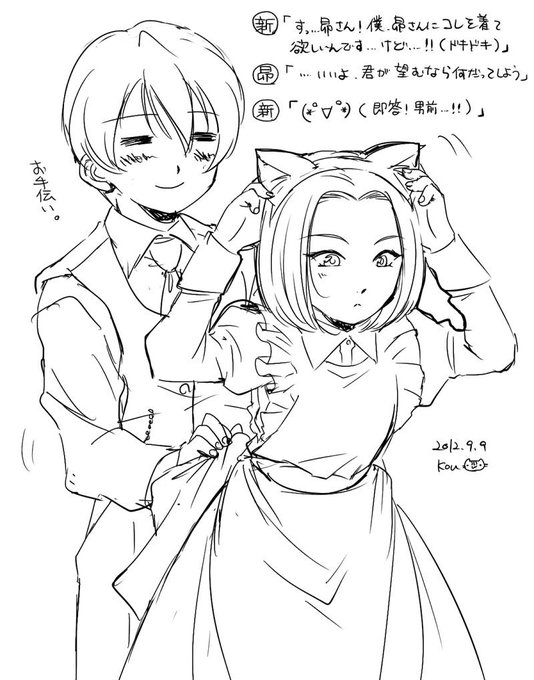 10 22 あなたは3時間以内に7RTされたら、猫耳とメイド服を着せようとしてる新昴の絵を描きます。 shindanmaker.com/255342 描いてみたー! 12/09/10 00:11