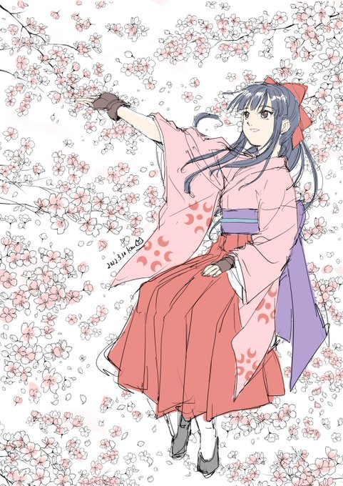 105 283 桜の季節になったので真宮寺さくら嬢らくがき 桜柄のトーン凄い!もう一個一個桜の花びら描かなくて良いの助かる!!← 22/03/30 16:43