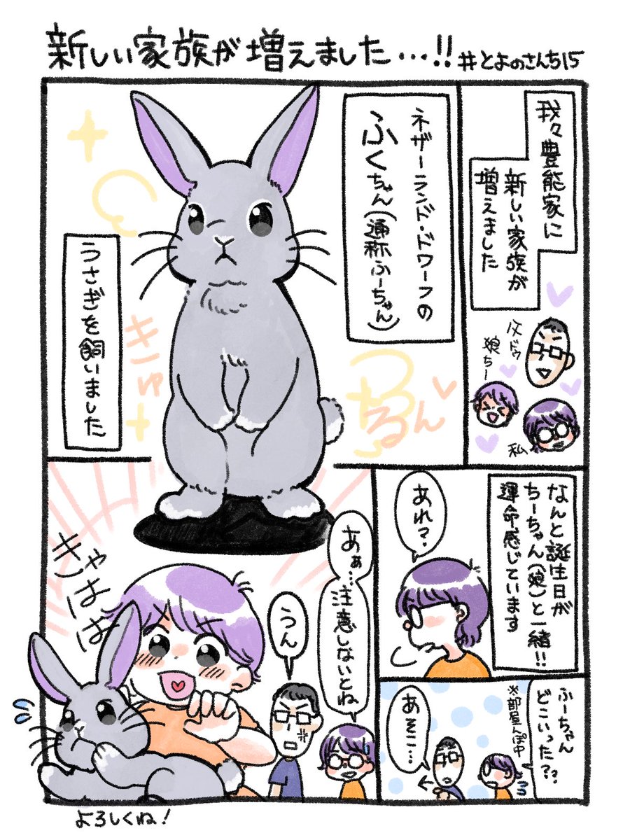 1 2 新しい家族だピョン! 久々のエッセイ漫画更新☆ #とよのさんち #コミックエッセイ #漫画が読めるハッシュタグ 23/05/19 08:42