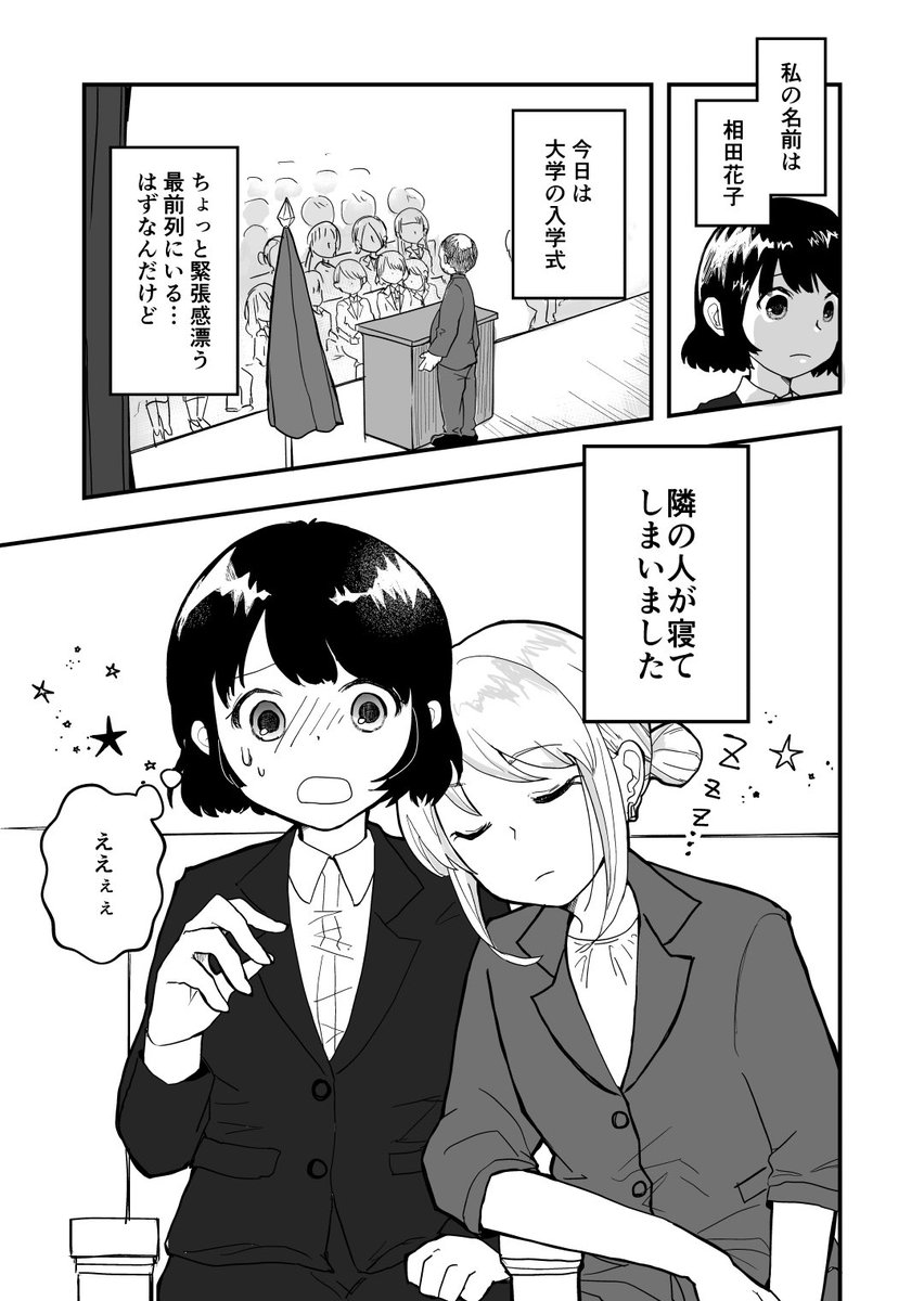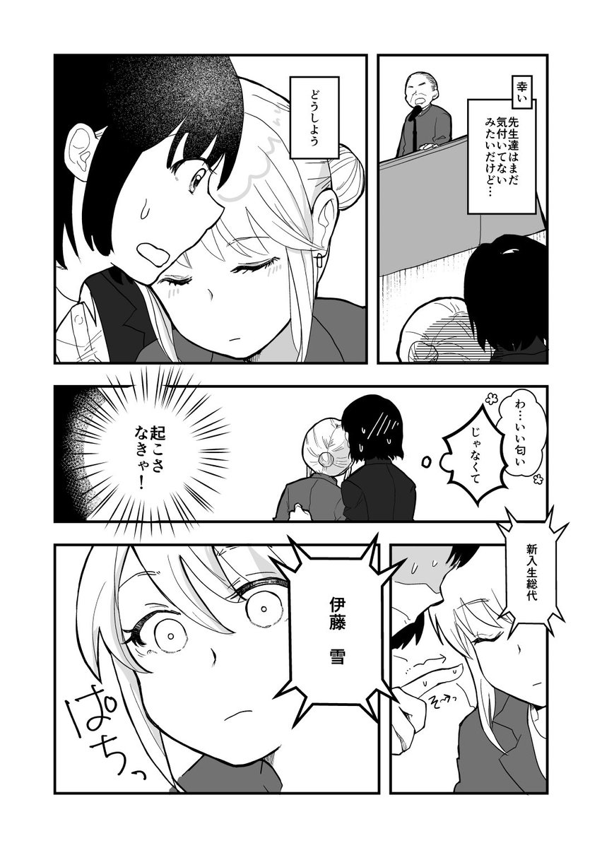 オリジナル百合漫画/ 🌸花に雪 入学式で最前列なのに隣の人が爆睡してます!!! #花に雪 #創作百合 #漫画が読めるハッシュタグ