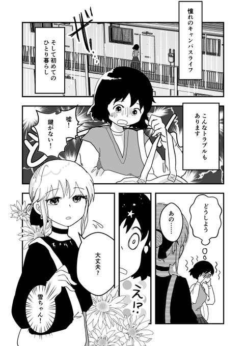 オリジナル百合漫画 🌸花に雪と2話 鍵がない!?!? 花子のピンチに現れたのは…? #花に雪と #創作百合 #漫画が読めるハッシュタグ