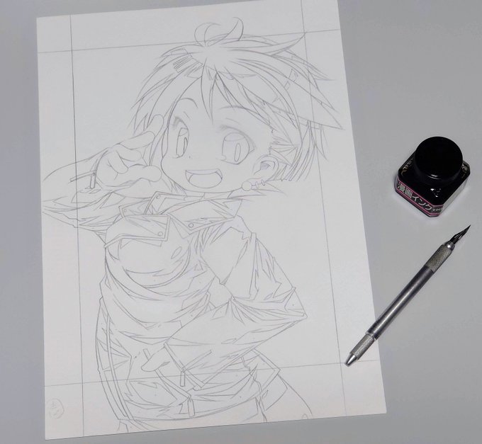 今晩26:00~ #配信 予定。 #Twitch ⇒ twitch.tv/atsuto_sakayaki 今日こそ完成する線画。 #絵描きさんと繫がりたい #アナログ絵 #drawing #artwork #水彩 #コピック #冬の創作クラスタフォロー祭り