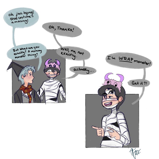 Day 17: Monster Joon and Jin go to a costume party #Artmytober2021 #arytoberday17 #namjin #btsfanart