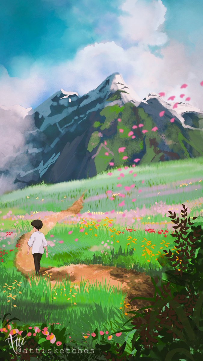 I want to walk this path with you- Still with you.🌱🍃 #JungKook #GetWellSoonJK #btsfanart #jungkookfanart