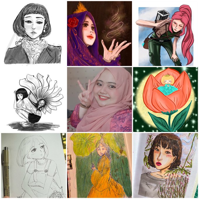 So here’s me with my girls and 1 boy 😆 From watercolour to gouache and digital… #artvsartist2021 #ArtistOfMalaysia #artistsontwitter