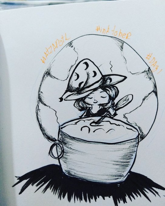 Inktober llegó!!! La lista que usaré es de @Kiryerufu y empezamos con el día 1 luna y bruja #Inktober2019 #Inktober #kirytober #tradicional