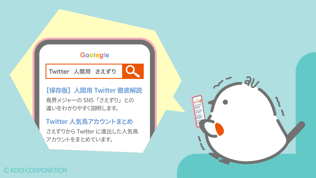 はじめまして、「auサポーとり エナ」です。見習いメッセンジャーとして働いています!このたび、“ついったー”をはじめることになりました(どきどき)。 #auサポーとり #よろしくね