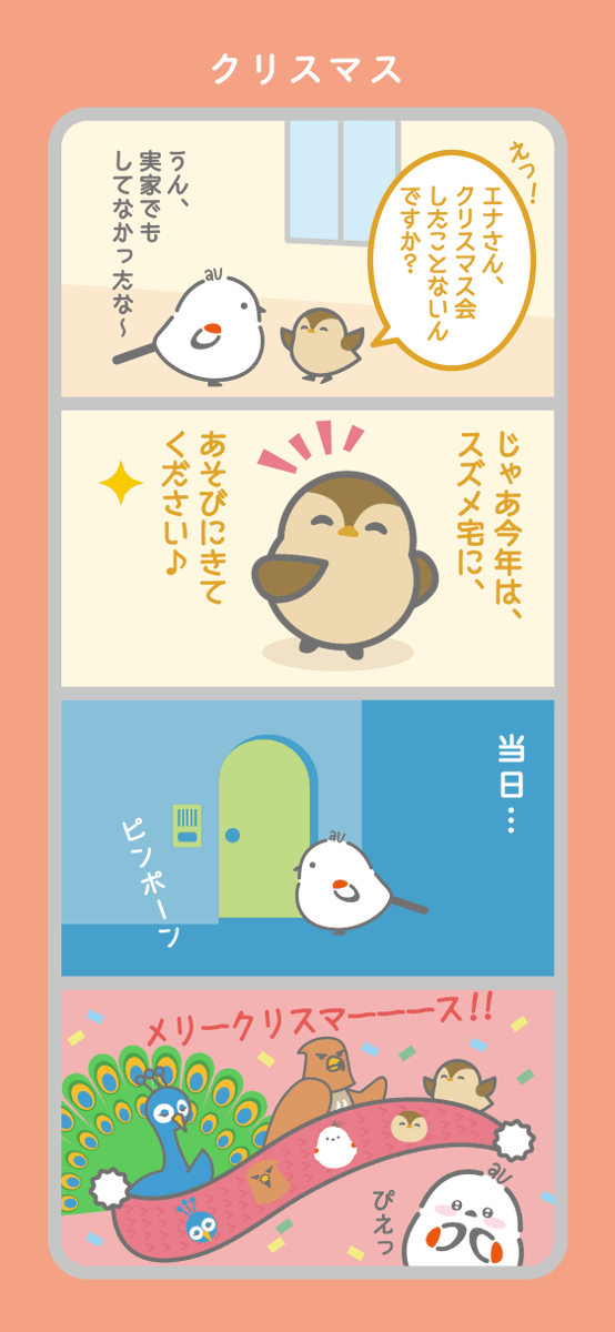 12 69 土日はクジャクさんとお泊まり会をしてきました♪ #auサポーとりエナ #シマエナガ #女子会 #4コマ漫画 23/03/13 12:14