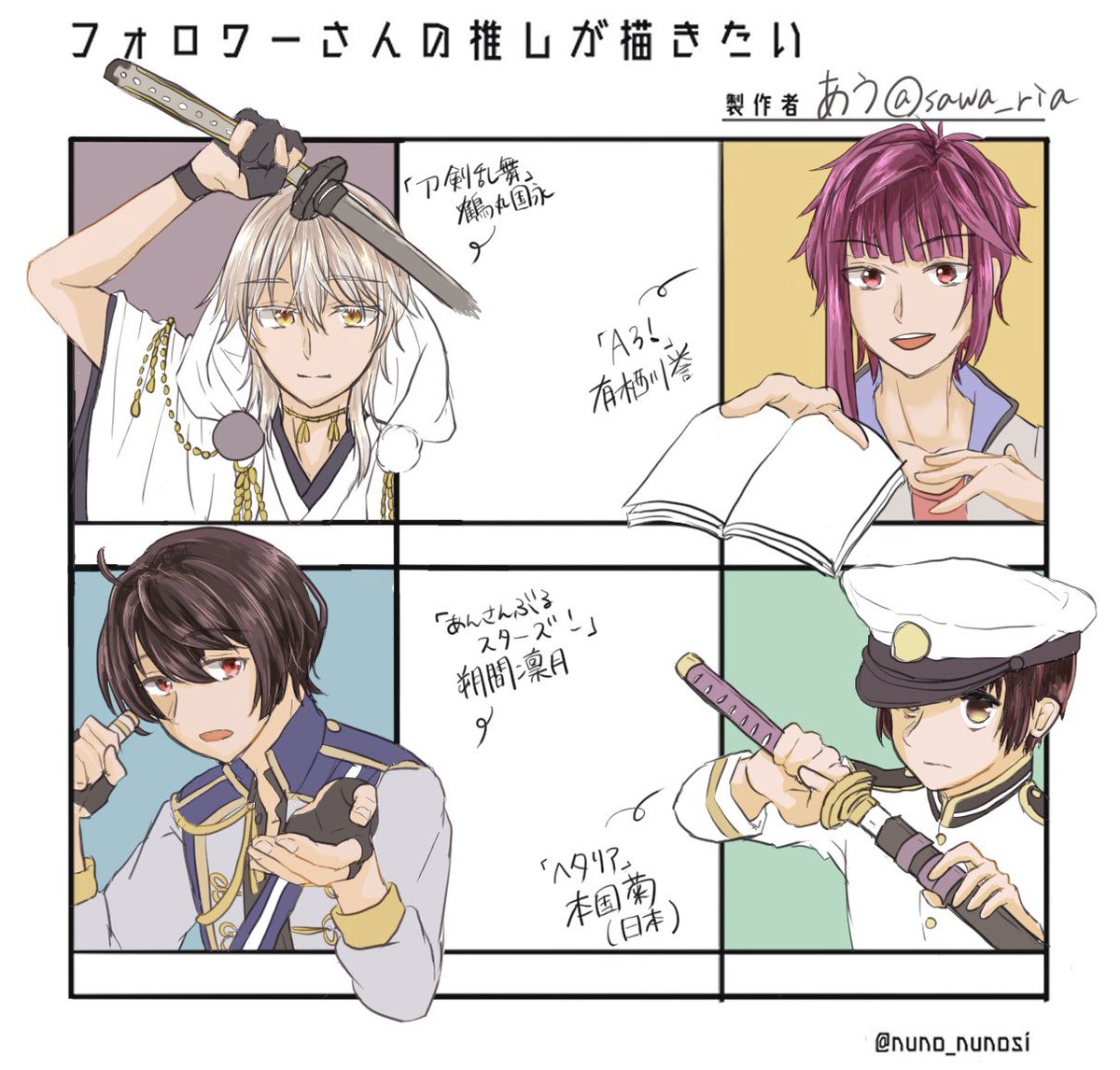 3 10 お待たせしました〜!せっかくだからみんなめっちゃ飛び出した。 テンプレお借りしました!普段描かないキャラ楽しい #フォロワーさんの推しが描きたい 20/05/04 10:57