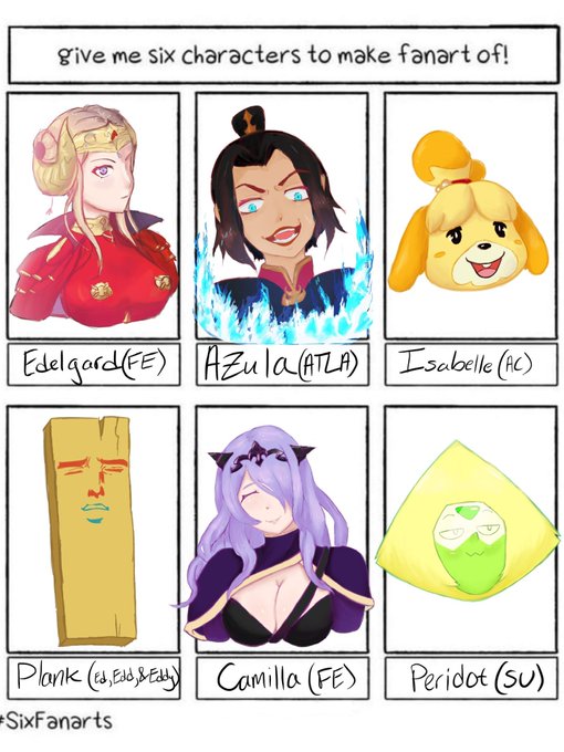 Some of these came out really nice! #sixfanarts #fanart #edelgardvonhresvelg #azula #isabelleanimalcrossing #plank #camillafireemblem #peridot #stevenuniverse #art #artist #artistsoninstagram #artwork #digitalart
