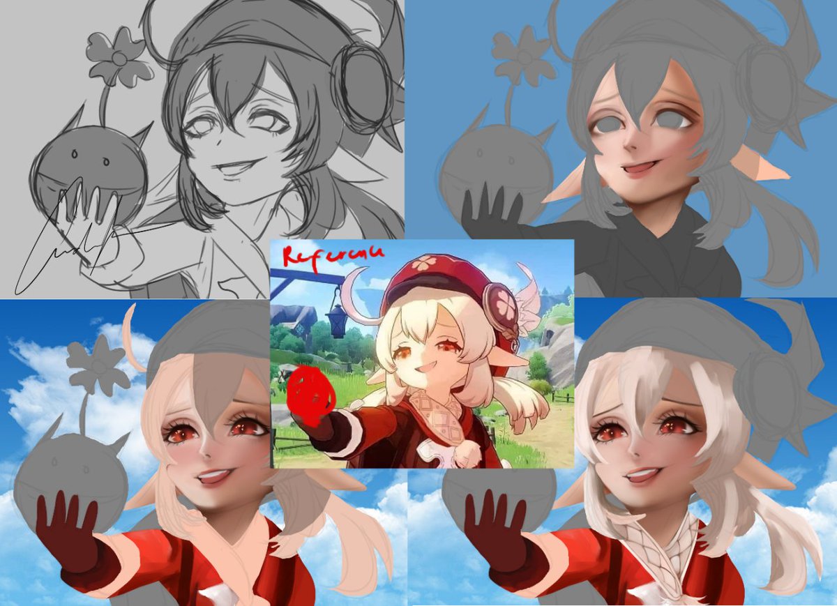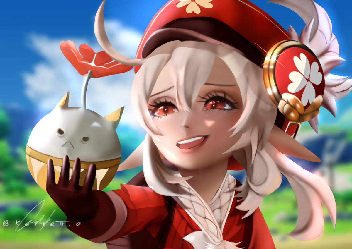 Klee as a practice (with reference) I changed her so instead of giving u the f, I made her holding a little bomberr #GenshinImpact #drawing #DigitalArtist #genshinimpactfanart #illustration #Genshin #art