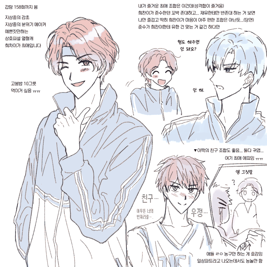🐶229 마침 문대 생일이라 후다닥 그린 푸슝리퀘에요...^ㅡ^ 이 회차 앞쪽의 멤버들 티키타카를 정말 좋아함... 💛🎂🎉~~~