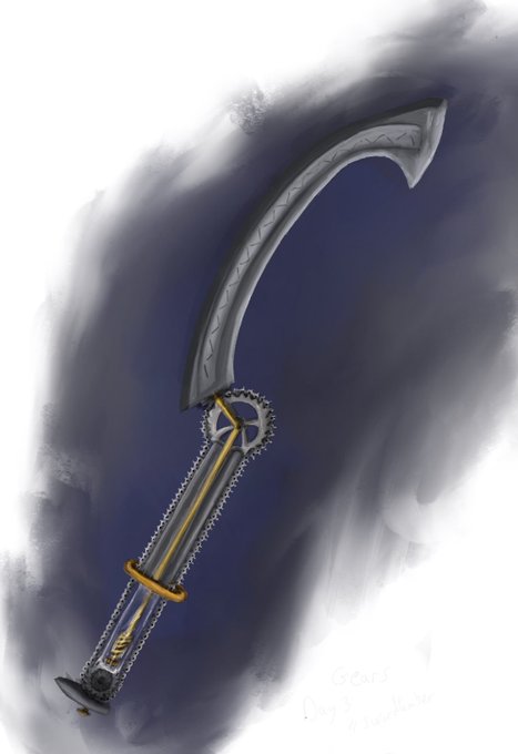 #Swordtember day 3 gears The khopesh butcher Wanted to go chainsaw like but with a bike gears chain effect and clear handle to see mechanism