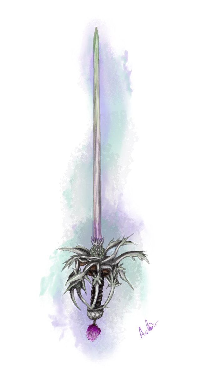Day 9 floral Inspiration the thistle and Scottish basket hilt saber Went a lil watercolours here cuz floral right #swordtember #swords #floral