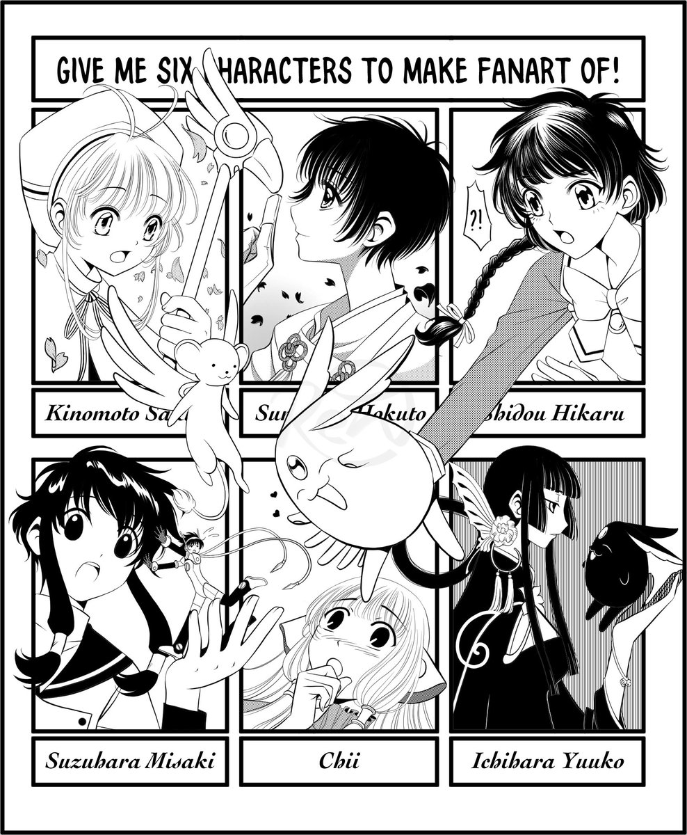 Finally, here we go. All CLAMP's heroines (and their cute buddies) got together in a single #SixFanarts frame. 💖