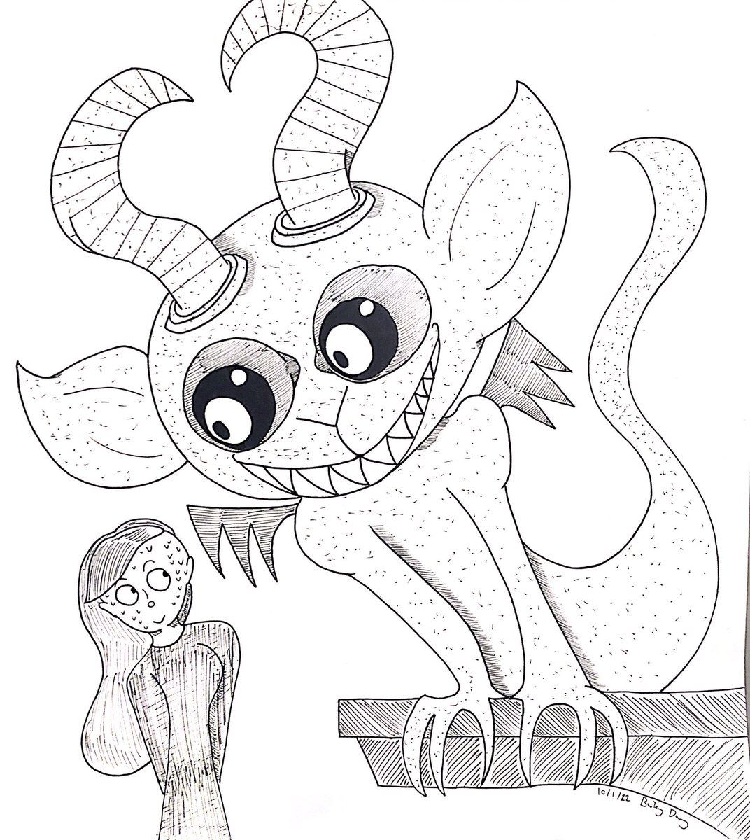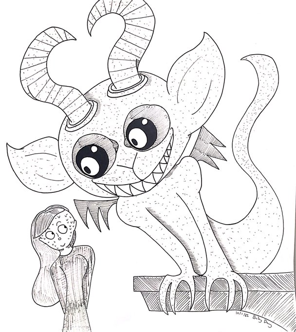 It’s that time of year again: #Inktober! Here’s Prompt 1 - and I wouldn’t like to run into a living gargoyle. #intober2022 #gargoyle #inktobergargoyle